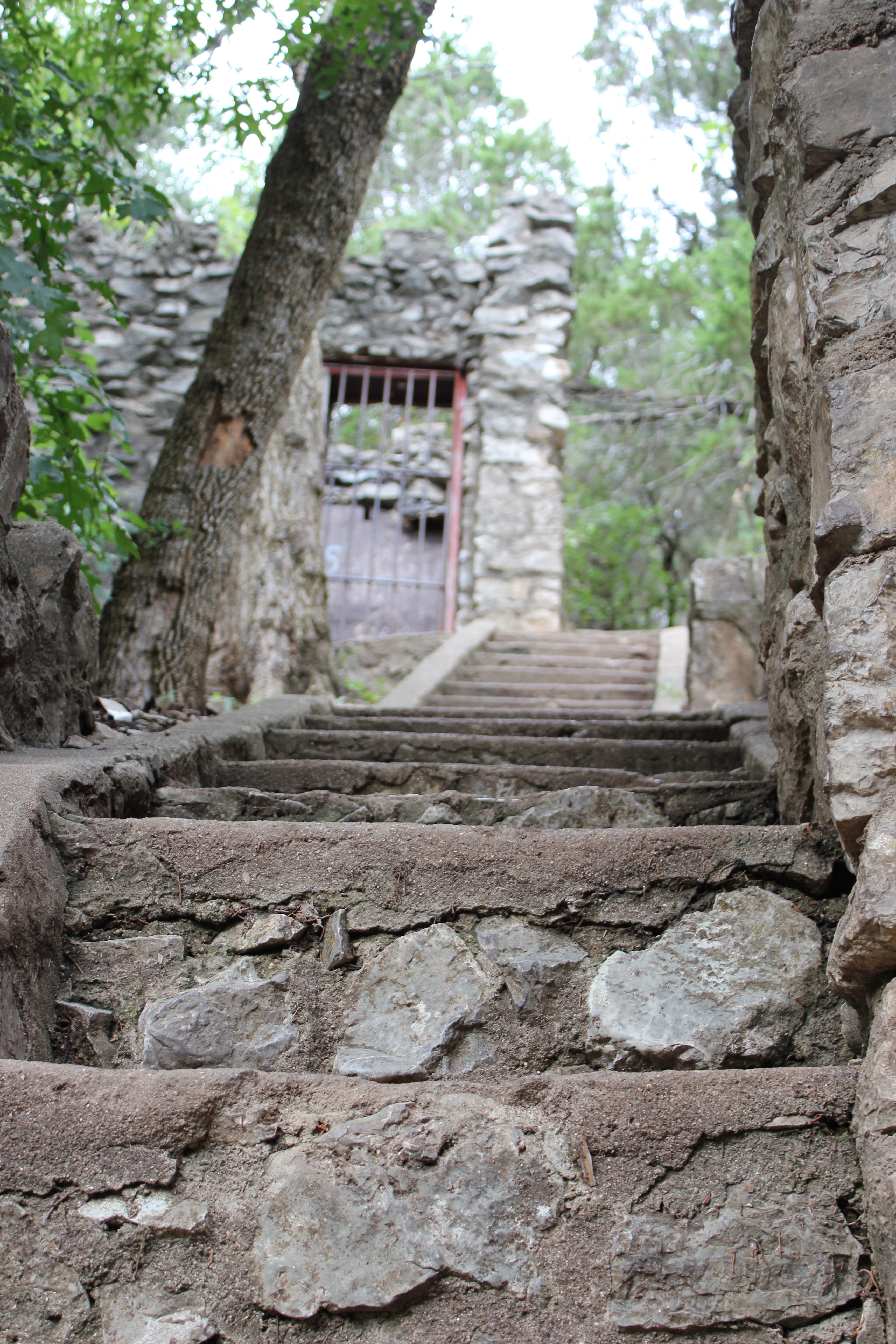 Brian and I were still thinking “state park” so we followed the map to the “castles” and “caves”….. The “castle” was built by a professor back in the ’30’s as (it sounds like) a guy’s hang out. The steps are insane. Super tall, super steep and super narrow. In some places there is a rickety handrail and in others you’re just supposed to hope your balance is good. I wouldn’t recommend it to anyone but teenagers.