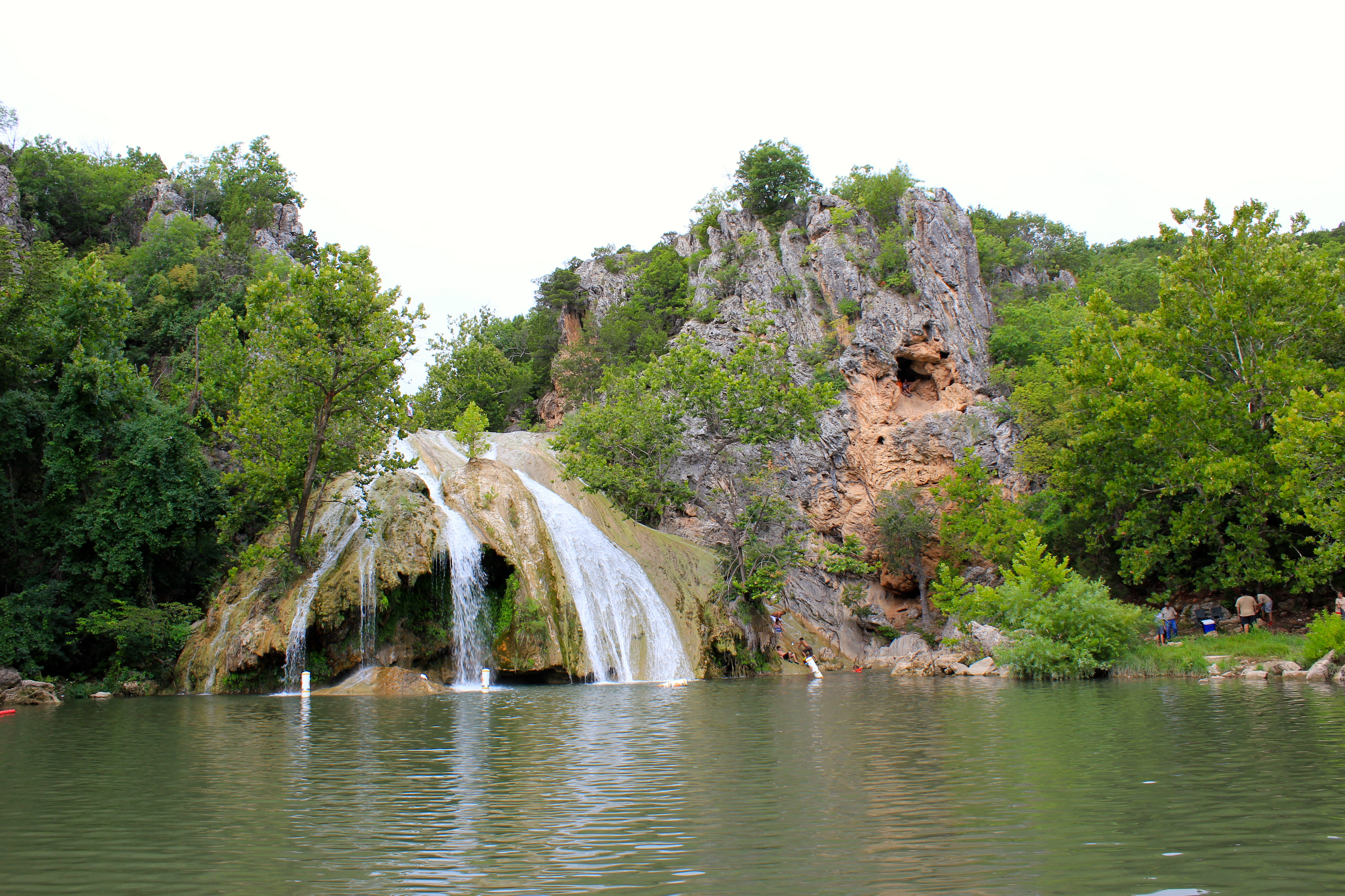 thing. Think more “natural water park” than “nature park with water”. Also think water park prices not state park prices. State parks are usually $5 a person…. this was $12…. not outrageous, but I’m trying to stick to a budget here people! Ugh. So instead of being what I expected, Turner Falls was something completely different. The Falls still turned out to be enjoyable. I’m not sure I would recommend it as a “must see” if you are just passing through. Now, if you planned to stay the whole day and play in the water or if you had kids with you…. yeah, this would be a great place to visit and spend the whole day. The falls are at the far end of the park, but there is a paved walkway up to it and a pool at the base of the falls to play in. A stream flows down from the falls and there were people playing there and further