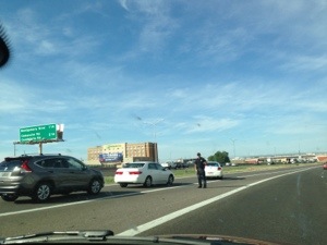 As we left MINI Sandia (ABQ) this morning we drove through a crowd of people and out onto the highway where the police had blocked the roads. Superstar treatment!