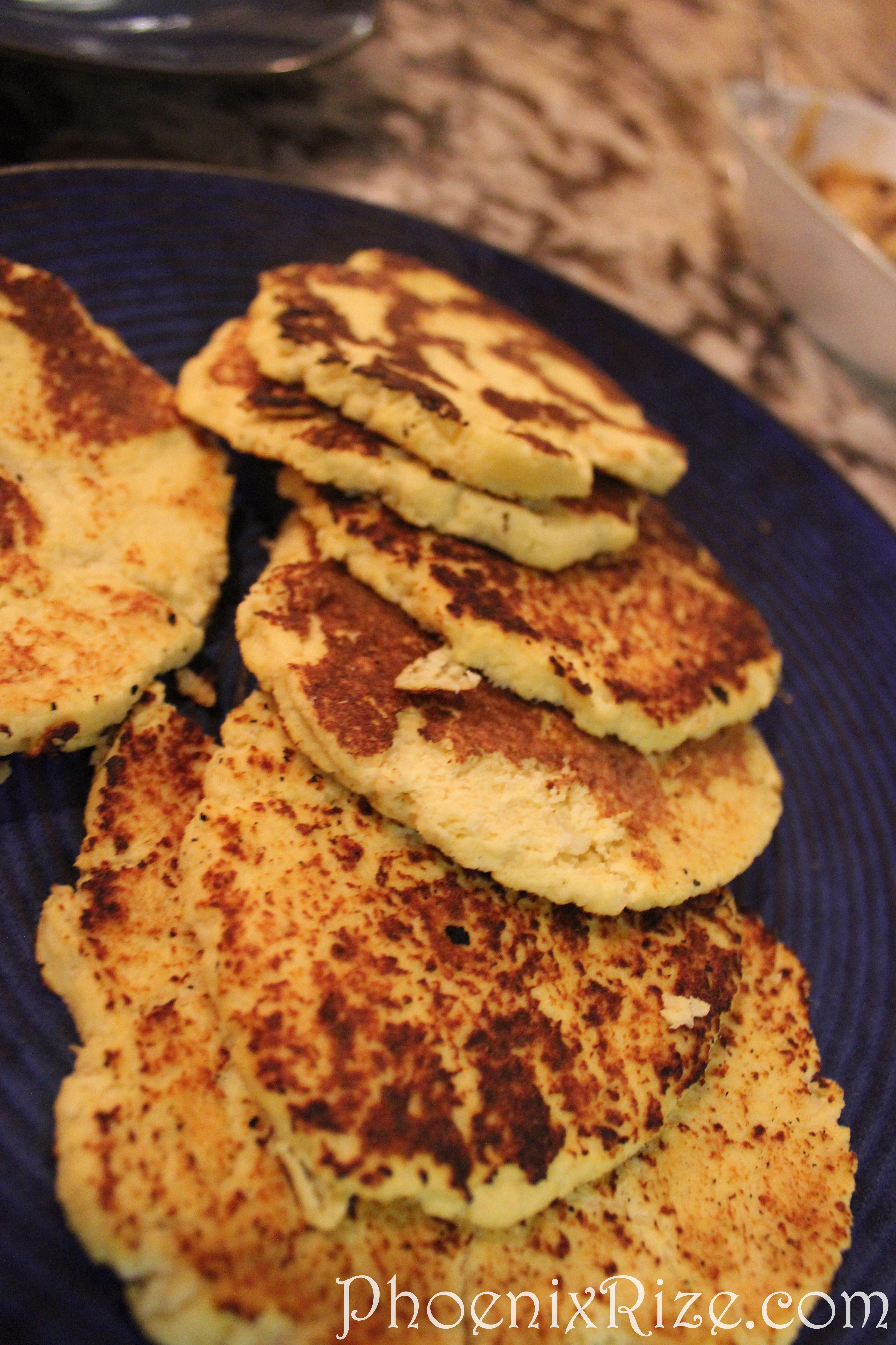 It turned out fine and the reason I probably didn’t notice my mistake is that my cauliflower ‘dough’ is a bit thicker than in the original recipe…. I use a whole head of cauliflower, where the original recipe calls for 3/4 of a head…. what am I supposed to do with 1/4 head of cauliflower?! They still tasted delicious and were pretty flexible. Making the dough slightly thinner (less cauliflower or more egg) and them baking them in the oven first and then crisping them in the pan might have made them a bit more flexible, but all in all I was still pleased with them. Brian didn’t even notice the difference.