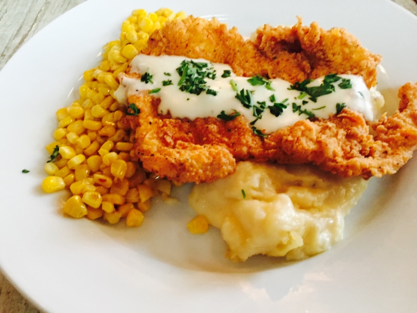 And the food… OMG! This wasn’t “good for gluten free,” this was GOOD food! Brian ordered the Shrimp Mac & Cheese and I had the Buttermilk Fried Chicken with Gravy. We switched plates halfway through… I really didn’t want to trade… I wanted all of mine and his! Dad ordered the Turkey Meatloaf… he was a sickie this week, so I didn’t try to steal any of his for fear of germs… but it looked really good.