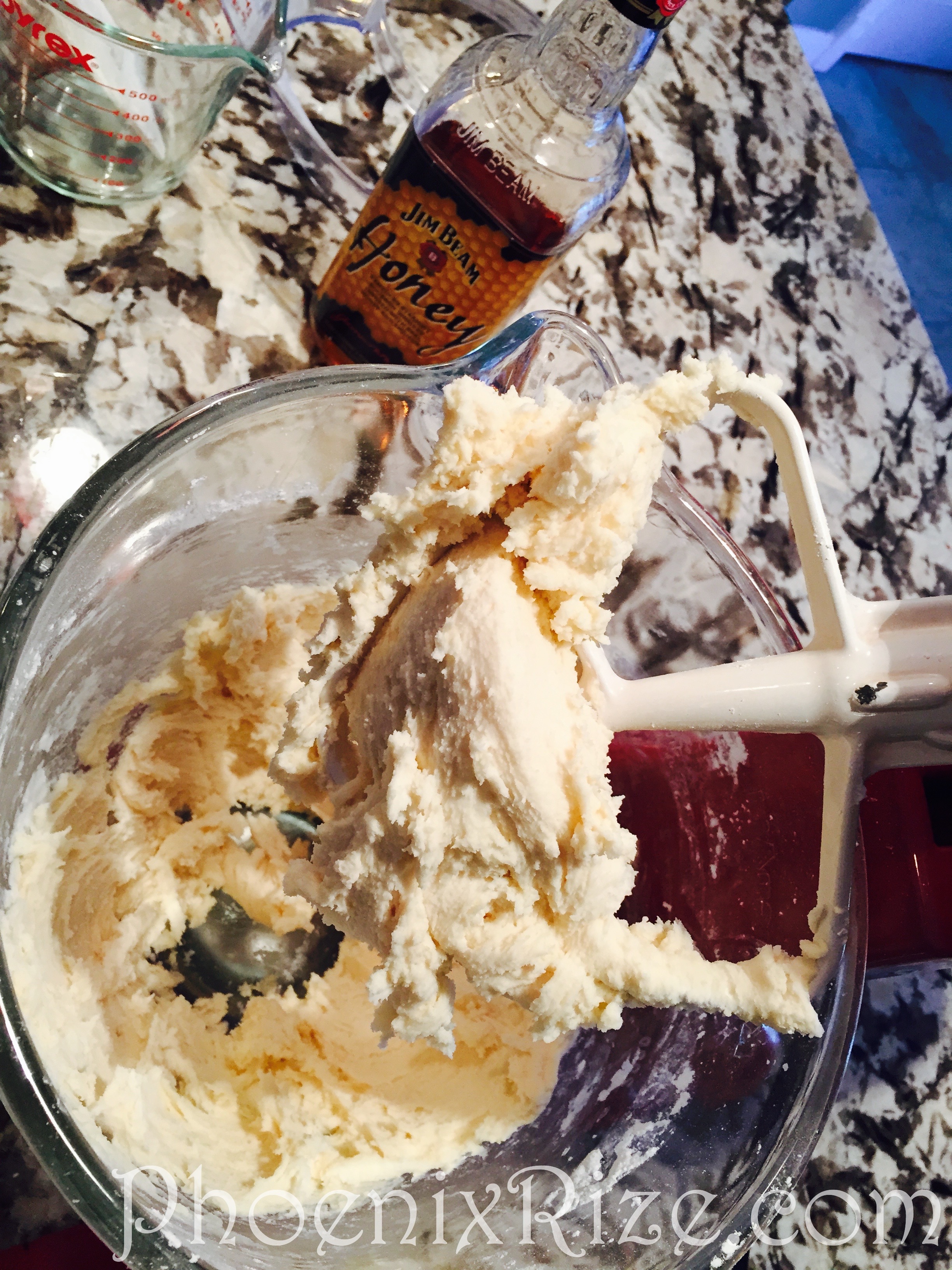Once the butter and sugar are completely combined, add the bourbon and vanilla. Now it will take on a more frosting-like texture.