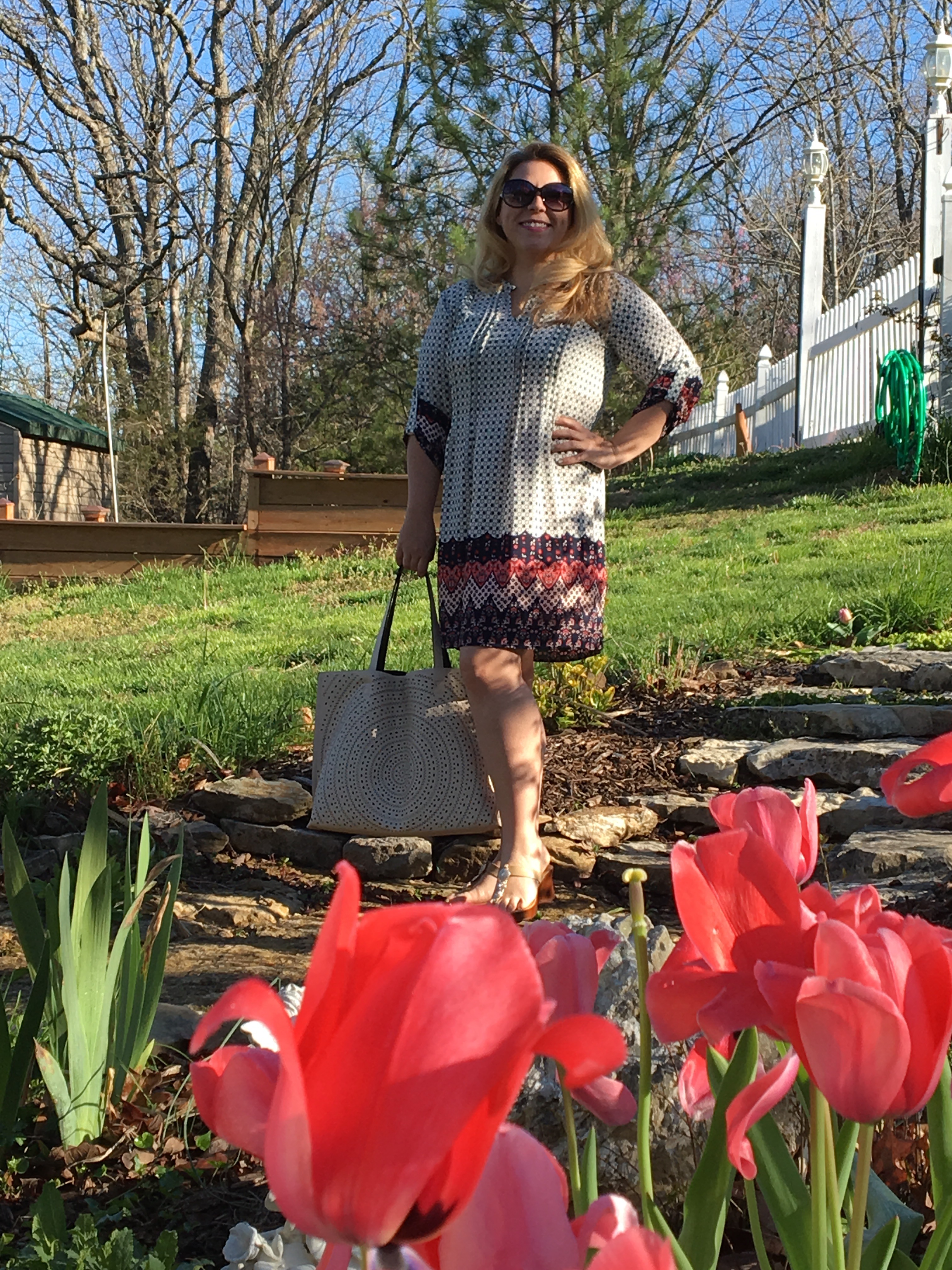 I LOVED LOVED LOVED this dress! It was exactly what I’d been looking for. You can’t see it really well in the photo… (Brian was fussing at me to hurry up… Flipping houses for a living means we don’t get a lot of days where I get to wear makeup or curl my hair. Since we were headed to IKEA I got to be pretty for the day… This was my best chance to be clean and in makeup for a while!) The dress has the cutest little pleats down the front that give it shape and narrow it in through the ribs and then let it flare back out over the hips. I hate belts and elastic waists. This is SO perfect!! And it has sleeves, but the material is really light so it shouldn’t be hot.