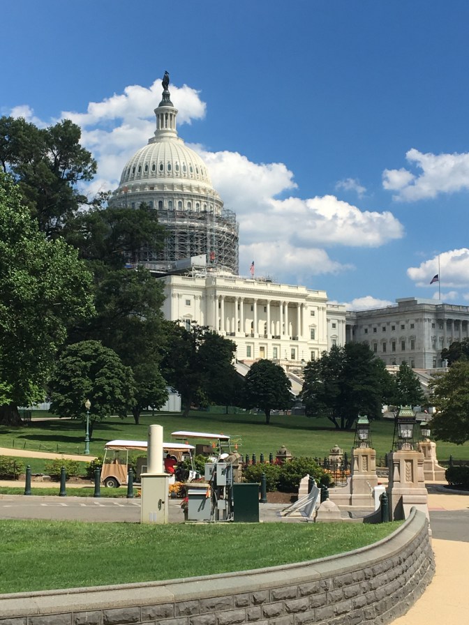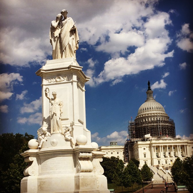 I actually took more photos on the ‘big’ camera… These are just the ones on my phone. I think we made it past the Lincoln Memorial too… There were a lot of buildings and monuments and important things… but my head was really starting to hurt and I finally realized that… Ya know… Maybe I hadn’t eaten hardly anything today…. Maybe that’s why I didn’t feel good….. I’m not always the brightest. In my defense.. Sometimes I feel a bit off and it means I shouldn’t eat… of course, usually it means I should eat, but it always feels like a bad idea. At any rate, I was over the bus tour and I just wanted to go find food. And sirens! Did I mention the sirens?! Every damn time we turned around there were sirens! Echoing around the buildings…. racing past us…My poor head.