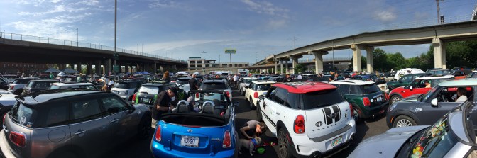 We finally got to one of the morning events early… too early… They were still setting up when we arrived. It’s been had to find a balance between early enough to get a decent place in the parking (because we’re released in the order we parked and if you’re way back in the pack sometimes you miss the police escort out of town. So you’ve missed having the traffic lights blocked and now you’re trapped in rush hour traffic.) and not too early that MINI isn’t ready for us yet.