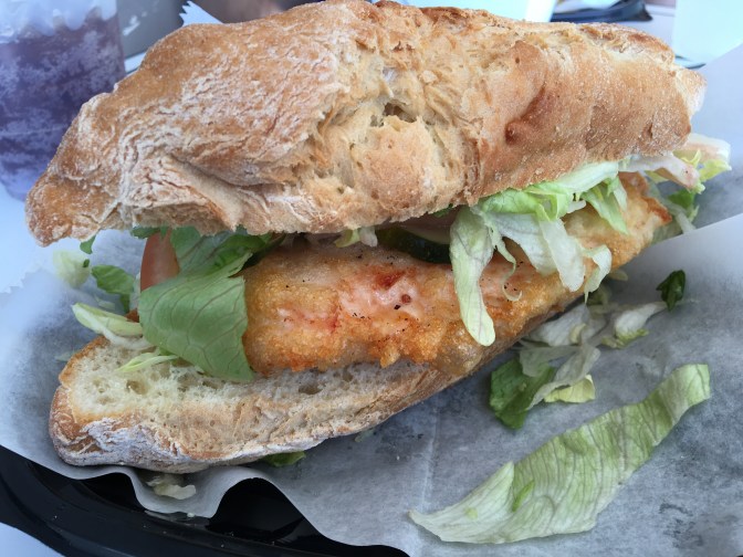 The chicken sandwich was huge and delicious. The bread was really good too. It crumbled on me a bit, but had a great texture.