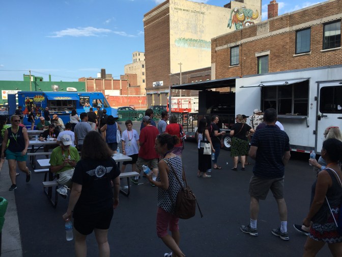 After dinner we headed to the evening event. We were about an hour early, but we were thinking that the venue would be like the French Market in New Orleans with lots of shops and places to wander around. Nope. The Eastern Market isn’t anything like the French Market. I think it’s supposed to be more of a farmer’s market? I couldn’t really tell. There weren’t any vendors or cool shops, just a bunch of empty pavilions in a not so inviting downtown area. We finally found a bunch of other MINI’s who had also arrived very early… and taken all the parking spots. MINI crews weren’t set up yet… (We were and hour early) so some Market staff(?) were hearding MINIs. I heard one of them yell to another that all the parking was gone and we’d just have to start parking on the streets. We finally found a spot to park with another small herd of MINIs.