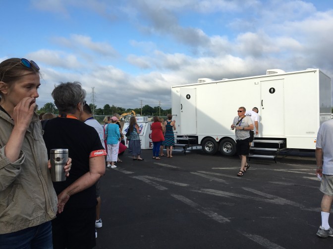 They had a nicer bathroom trailer this morning too… There were four bathrooms on the ladies side and three on the boy’s side. There still could have been more bathrooms, there could always be more bathrooms… but these are pretty nice. They’re the rv style toilets, but there’s real running water and air conditioning (not that we needed it today) and sinks. These things are cool!