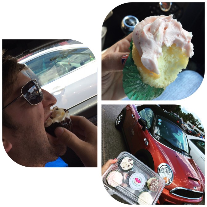 The afternoon Surprise & Delight wasn’t a surprise… The shop owner that was hosting us has been posting on the events FB page for a week with updates and suggestions about the area (like good bathroom stops and restaurants to visit) but it was a total Delight! The Gourmet Cupcake Shoppe was awesome! This gal was totally on top of the whole event. I heard that she even attended the event in Ohio just so she’d have a better grasp of what to expect when we showed up. They did a great job! They must have baked though the night.. There were over 5000 cupcakes ready for us today. They gave everyone a free mini cupcake and they had regular cupcakes and MINI frosted cookies available for sale. They had an iced tea area…. They thought of everything. Brian and I bought four of the Gluten Free cupcakes and they were fantastic. I actually started eating mine and kinda freaked out. It tasted like a real cupcake… I couldn’t believe it was gf. I figured I’d already eaten half of it… If it wasn’t gf I was going to be sick anyway so I ate it all. Apparently it was just the most amazing gf cupcake ever! I ate the whole thing and felt perfectly fine. I have two more to eat later! (I should probably share one of them with Brian though….)