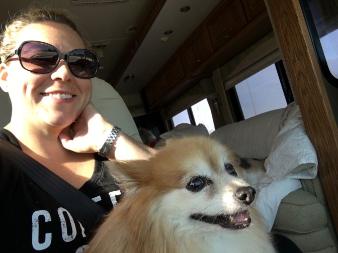 We’re headed to Florida for our Design Review. We get to pick out our colors and make changes and choices for the new house. Mom is going with us this time and I’m excited to show her our new neighborhood. (She hasn’t seen anything yet! She just said she trusted us and to go for it… Which is either super sweet or totally bat-shit crazy…. I’m not sure.) We decide that the cats needed to get used to the RV so we’re taking them too. (Yep, it’s just as awesome as it sounds.) Boo is a trooper… She’s up for anything. (She’s a lot like her Gamma.)