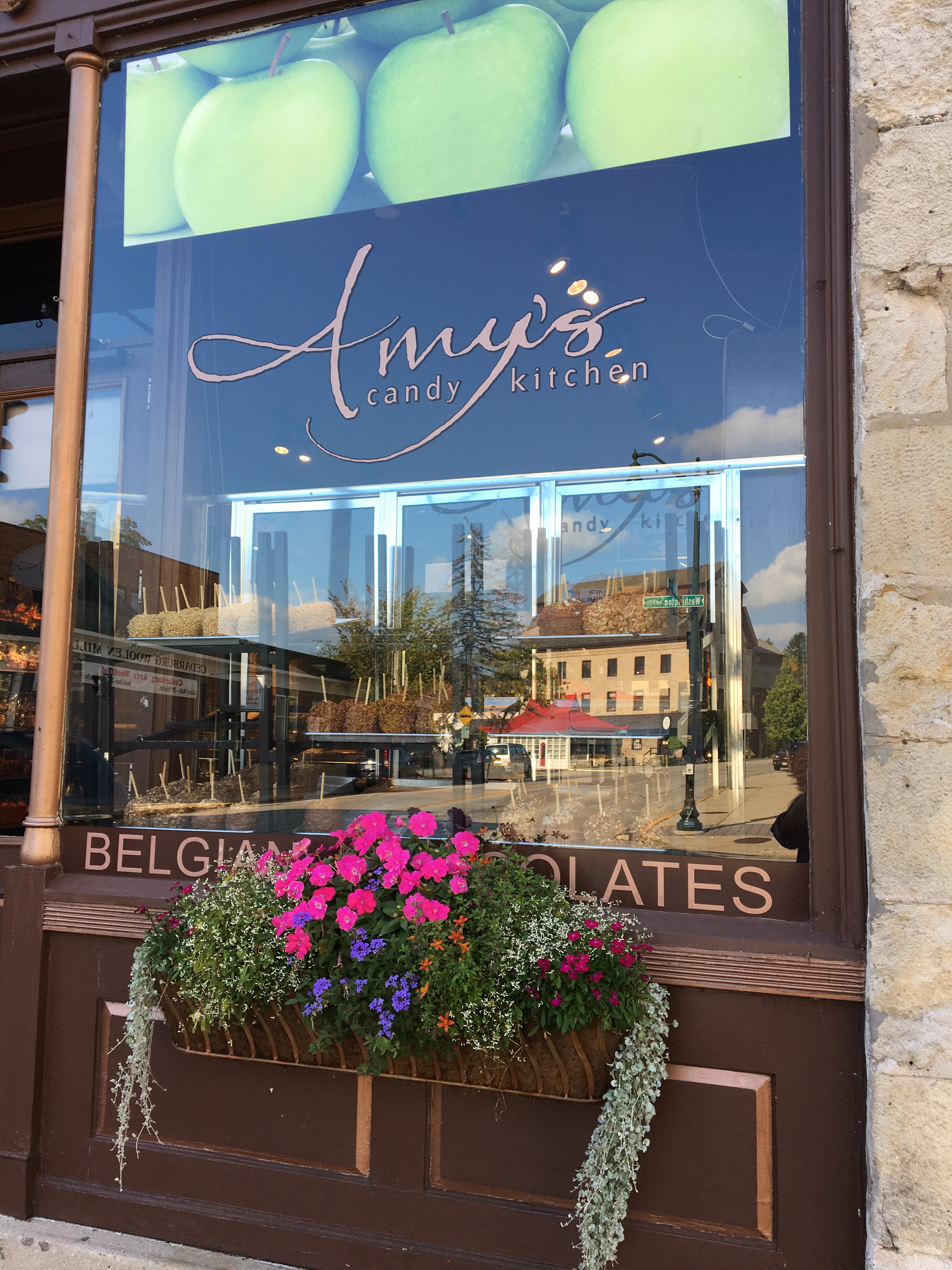 After the FLW tour we headed to the historic town of Cedarburg, WI.  We’ll be going back again this weekend for their Fall Festival, but I figured that the town would be crowed this weekend and if we wanted to see the shops, we should go during the week. It’s a pretty little town.  Lots of old building and interesting shops, but living in the RV has really dampened my shopping abilities for the moment.  I don’t have anywhere to store anything that I buy and since the new house isn’t even built, I don’t know where anything would go anyway.  I did want to check out Amy’s Candy Kitchen though.  I’d read drool worthy reviews of the gourmet candy apples and just had to sample them for myself.