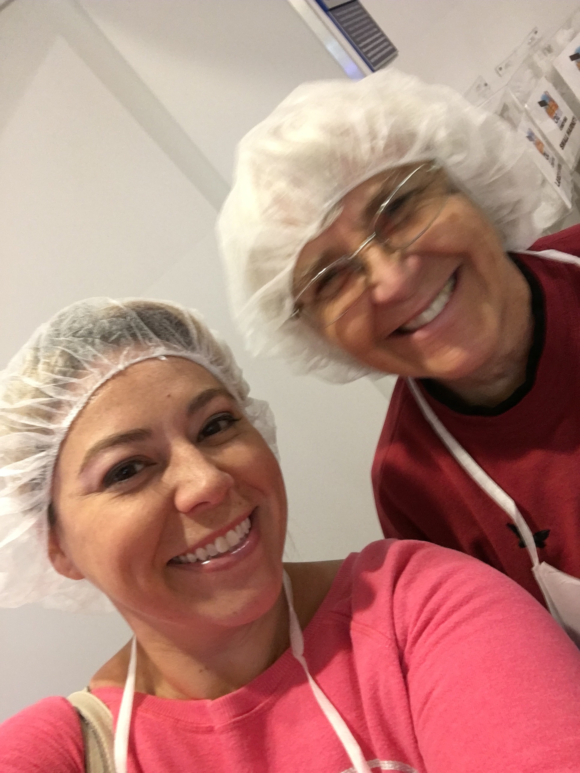 It starts out with Hershey wasting a bunch of money and resources again… each of us were given a disposable hairnet and an apron… because we’d be in an actual factory kitchen…. everything was behind glass! We weren’t getting near anything that we could contaminate.