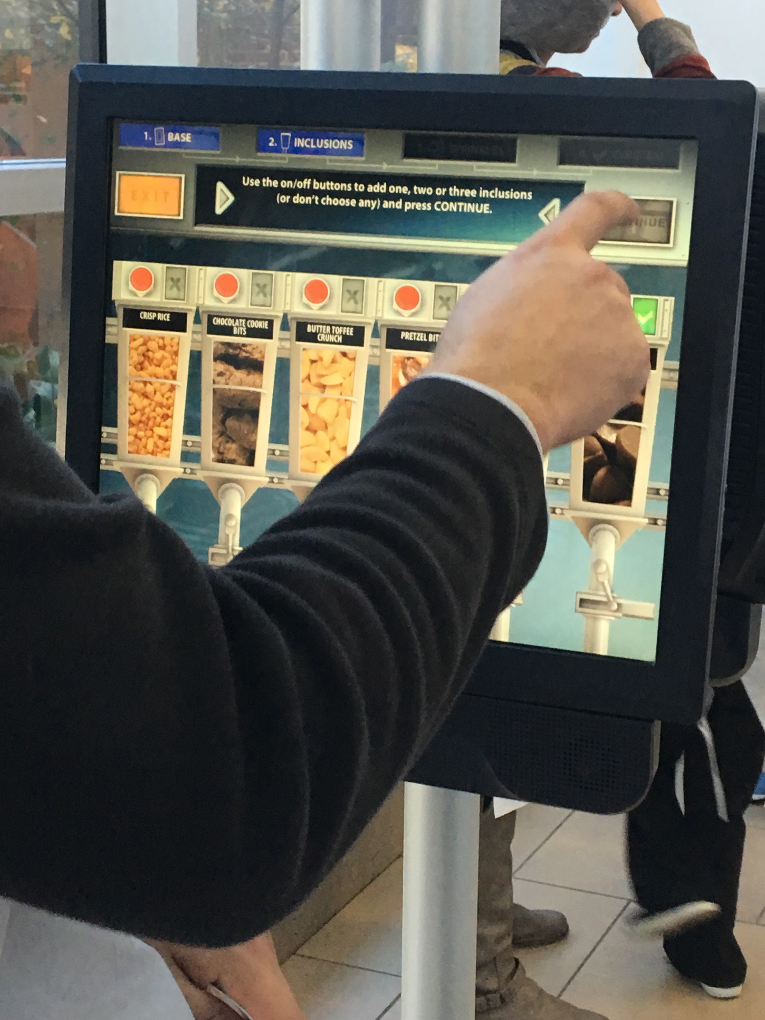 We went to a series of computer screens where we’d scan our ticket and then make our selections for our candy bar. Scanning the ticket kept your candy bar and personalized wrapper coded just for you. Which was cool.