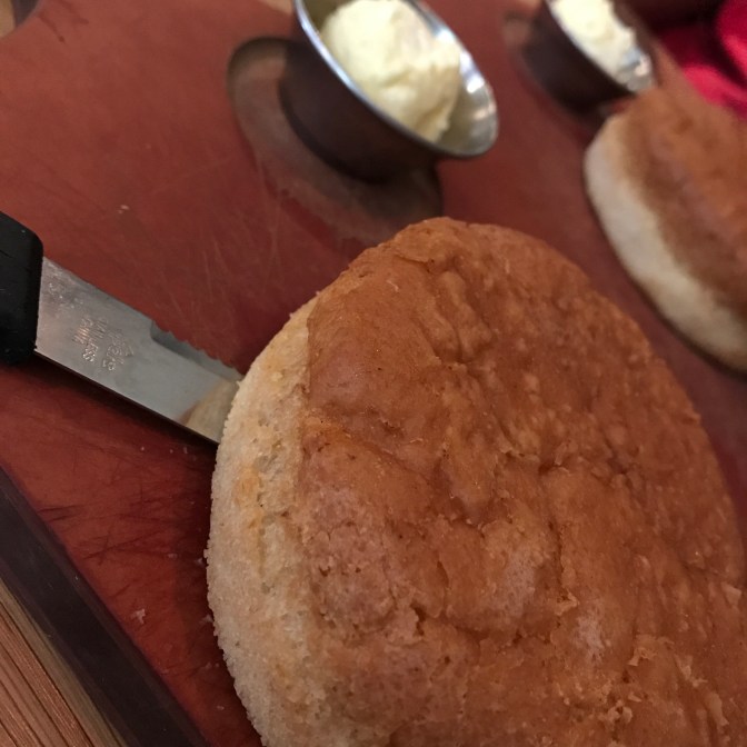 They started us off with a bit of gf bread and butter (I think it’s the same buns that they use for the hamburgers) instead of the Pretzel Bread, while we purused the menu. Mom, who never really likes the bread, loved this. It has an ever so slightly sweet flavor and a really great texture. The whipped butter didn’t hurt either!