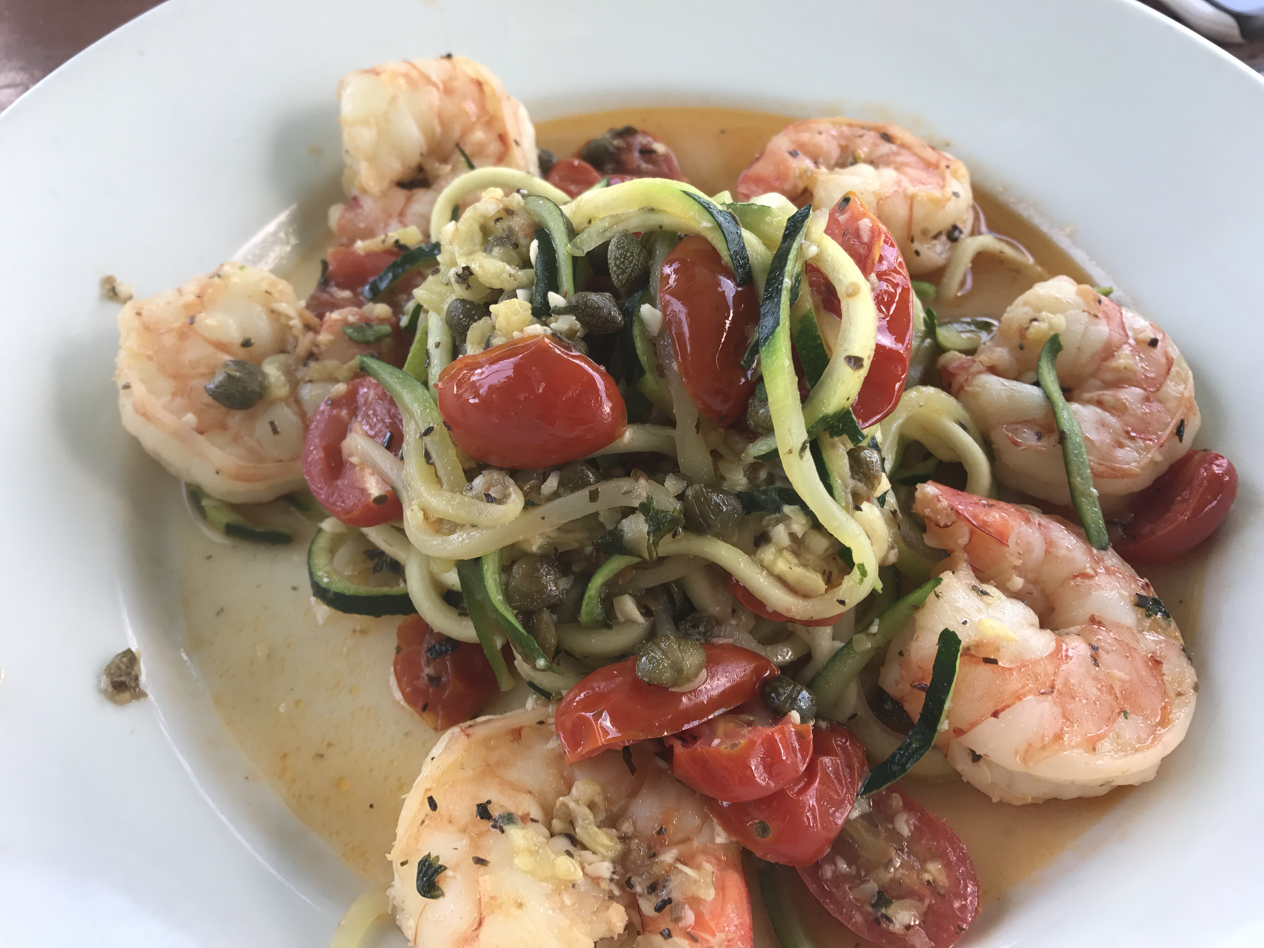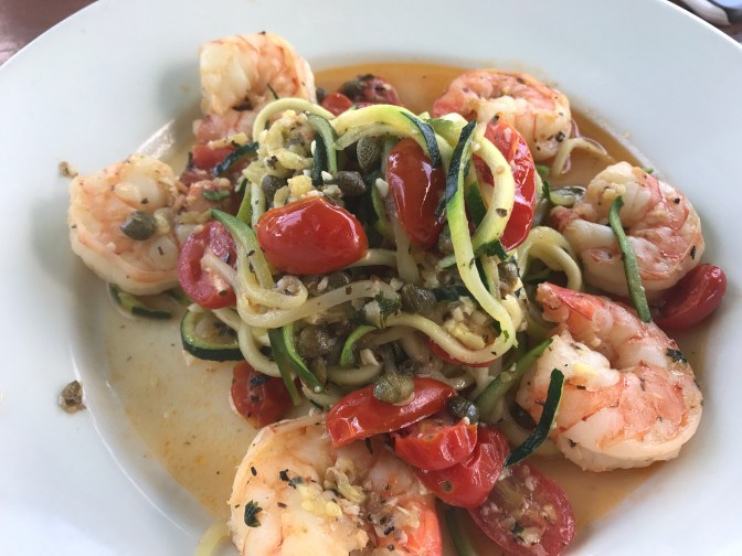 Brian got the Shrimp Zoodles. My mom has been telling me to make zoodles for forever, but I kept resisting… they just didn’t sound yummy…. Mom was right (As usual) the zoodles were delicious!