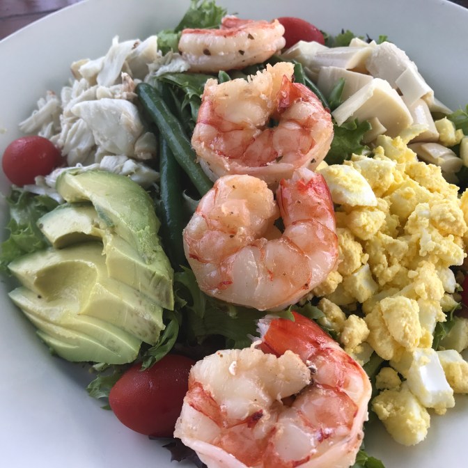 I ordered the Alligator Reef Salad. There’s no alligator in the salad…. but the crab, shrimp and hearts of palm were super yummy. It was served with a Mango Citrus dressing that really complimented the shrimp and crab.