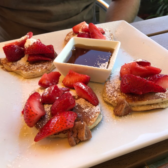 Breakfast was not inexpensive. There was a $4 up-charge for all GF orders… which seems a bit steep to me…. but, the food was delicious. So just go in knowing that you’re going to pay an arm and a leg. (It’s worth it though!) The pancakes were $12 and the French Toast was $11 before the extra $4. Strangely, my French Toast got the upcharge, but Brian’s pancakes didn’t…. I took a bite of his pancakes and didn’t have any issues, so….