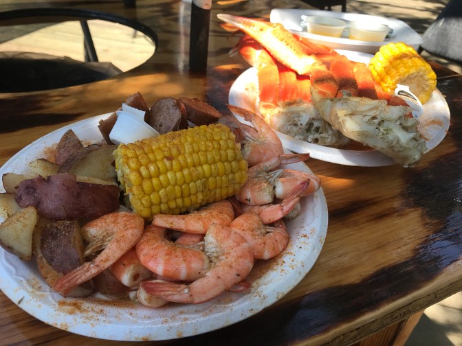 We’ve eaten at the Crab Shack twice before and loved it. There is a huge patio/deck area under these gorgeous trees. It’s beautiful…. and swampy and just fun.