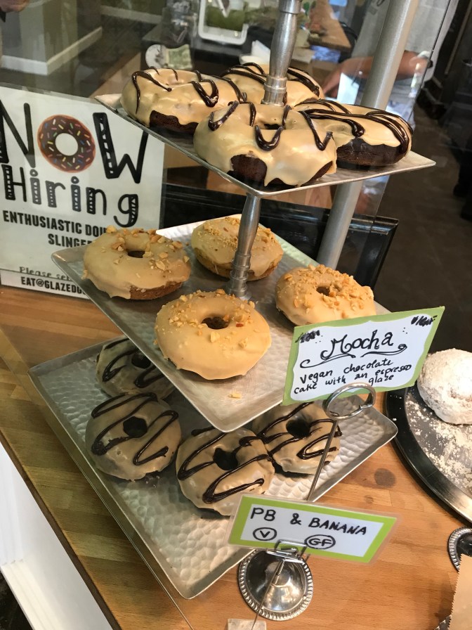 First stop: Glazed Gourmet Doughnuts. The reviews were kinda iffy, but… doughnuts! Apparently, Glazed only offers GF doughnuts on Fridays and they don’t make a ton. Brian and I arrived around 9:30 and they still had enough to give us sugar shock. We ordered two Mocha and one PB & Banana (because Brian doesn’t like peanut butter…. weirdo!) I had to share my Mocha with Brian since I got the whole PB & Banana…. it was good, but I’d rather have had the whole Mocha.