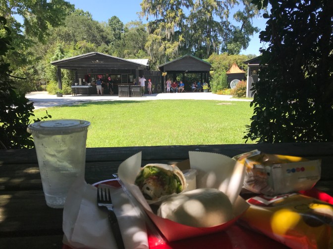 Since we planned to spend all day we figured we could find something to eat at the Peacock Cafe on the property. Surely there would be a salad or a sandwich we could order without bread…. right? Wrong! The food is all catered in so everything is already assembled (and encased in bread) and no one had any clue about allergy info. I made do with a Sprite and a bag of Lays potato chips. Brian ordered the wrap and ate the insides, which turned out to be one slice of turkey, a piece of cheese and a bunch of lettuce. I realize that I’m the one with the health issue and the world doesn’t have to accommodate me and all that…. but there’s a lot of us GF people out there…. I’d have figured there’d be something that would work. (p.s. Vegetarians, you’re out of luck here too.).