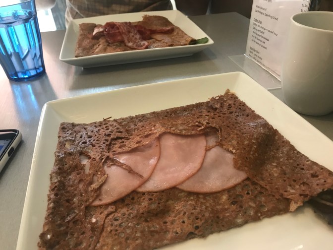 For breakfast I’d been voting on this cute sounding place with cinnamon pancakes, but Brian saw that it was also vegan and he wasn’t having anything to do with fake bacon. Instead we chose Breizh Pan Crepes. It sounded like a great choice since all of their savory crepes are already gluten free and any of their sweet crepes could be made gf easily. (Its such a relief when everything starts out basically gf.)