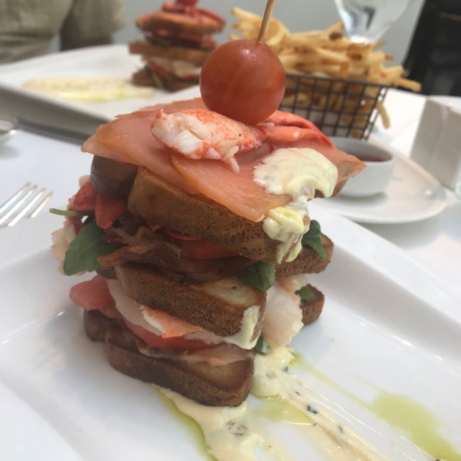 Lunch was fabulous. Brian and I both ordered the Seafood Club….. at $30 it was the most expensive club sandwich I’ve ever eaten, but absolutely worth every penny. Three slices of gluten free bread were loaded with smoked salmon, shrimp, crab, tomatoes and cheese. It was insanely good. I will dream about this sandwich.