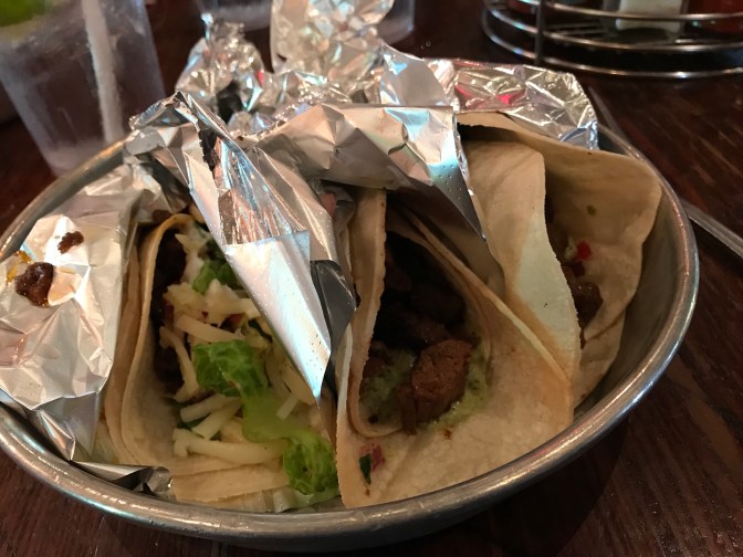 The restaurant was noisy, but our waitress was great. She said we’d be safe with anything that wasn’t fried and just to choose corn tortillas instead of flour. There were several different kinds of tacos to choose from and only a few had anything fried in them that we had to avoid. Brian and I each chose three tacos and loved every bite of them all.