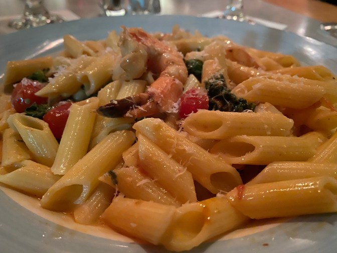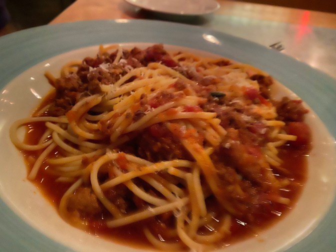 Dinner was excellent. I ordered the special Vodka ummm… oh, crud. I’ve forgotten the name… Vodka something or the other with seafood and Brian ordered the Spaghetti Bolognese.