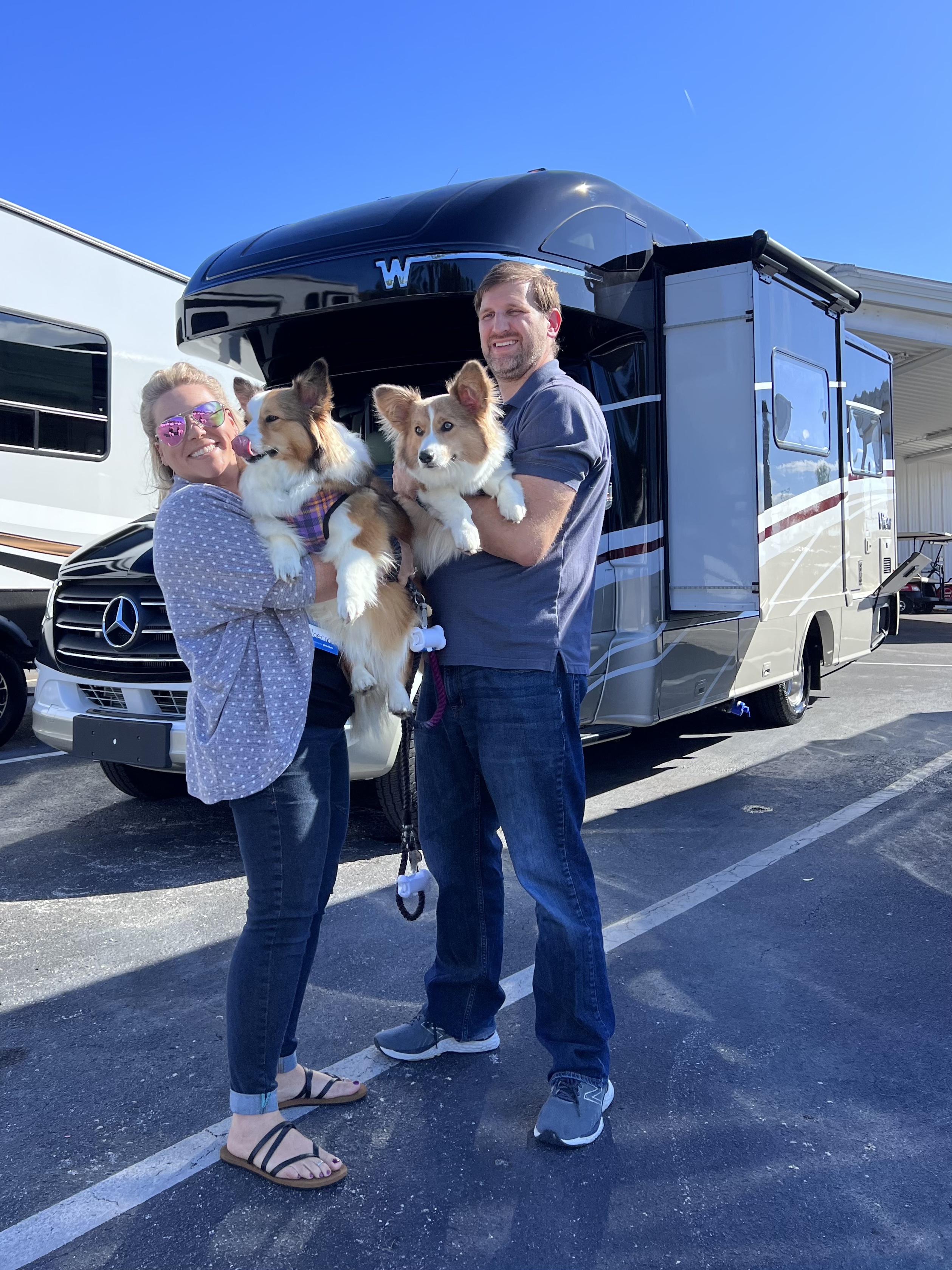There was a bit more hunting, but we finally settled on a 2022 Winnebago View. Of course we took Winnie and Pooka on all of our searches and took special note of the ones that they seemed most comfortable in. When we checked out the Winnebago both pups climbed right up the stairs and hopped up on the couch. It seemed like they approved, so we made the decision the way we’ve been making most of our decisions….. by what the dogs liked best.